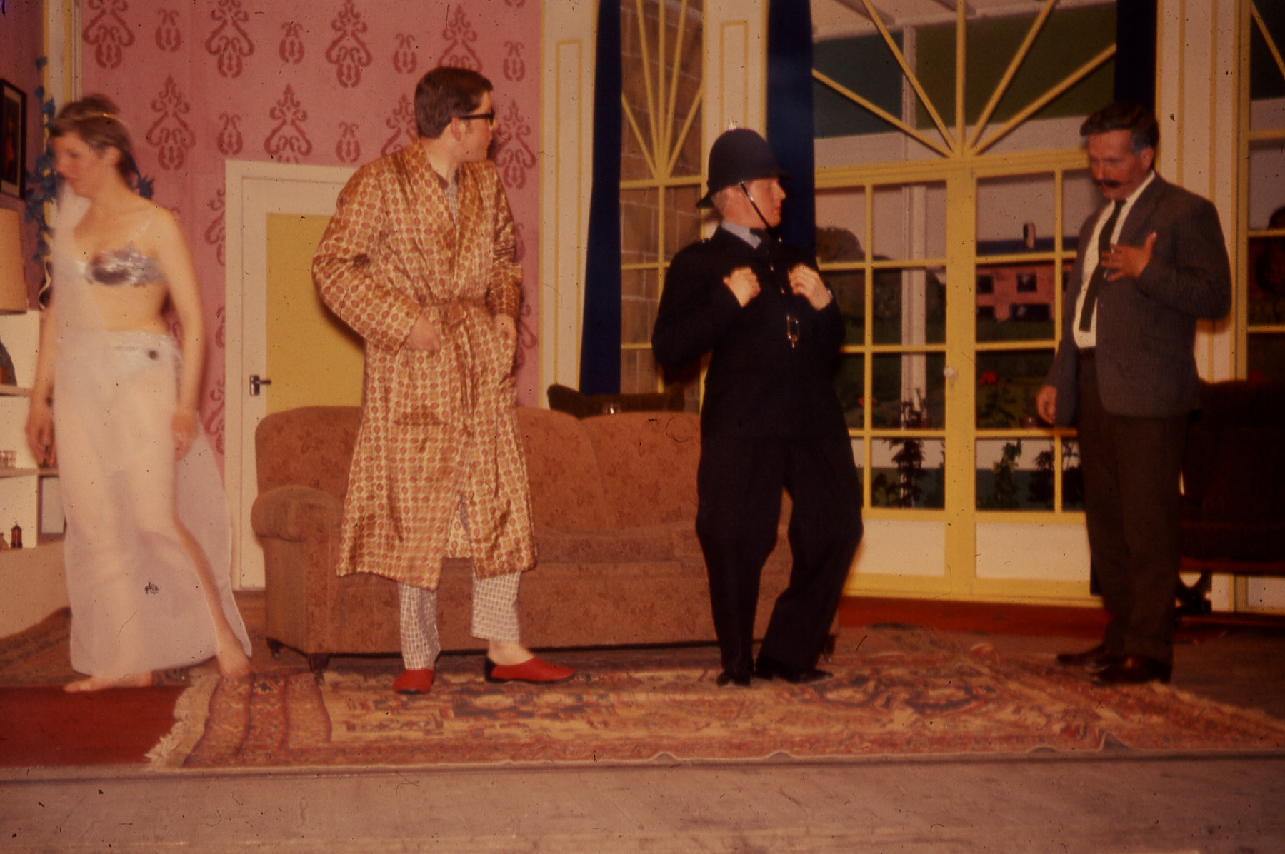 Tony Scudamore, who did his wartime service with the British Army in North Africa, has settled into a peacetime career with the Foreign Office. Tony displays almost a bit too much British reserve for his American wife, Sally, as does his older brother, Ken, on leave from his tea plantation in the tropics, and when Jack Krasner, a friend from the States, arrives unexpectedly she jumps at his invitation for an evening on the town in London. Tony and Ken are not won over so easily, particularly as the senior Scudamores (he's also in the Foreign Office) have suggested a family dinner for the evening. So the upshot is that Sally and her old beau go one way, while Tony and Ken go another. Nobody stops to think much about a certain letter which arrived that morning informing Tony that he has been remembered in the will of an Arab sheik whose life he saved during the war. By the end of the evening the fog is too thick for Sally to get home, but Tony and Ken make it, and so does Haroun El Bahn (the sheik's emissary)