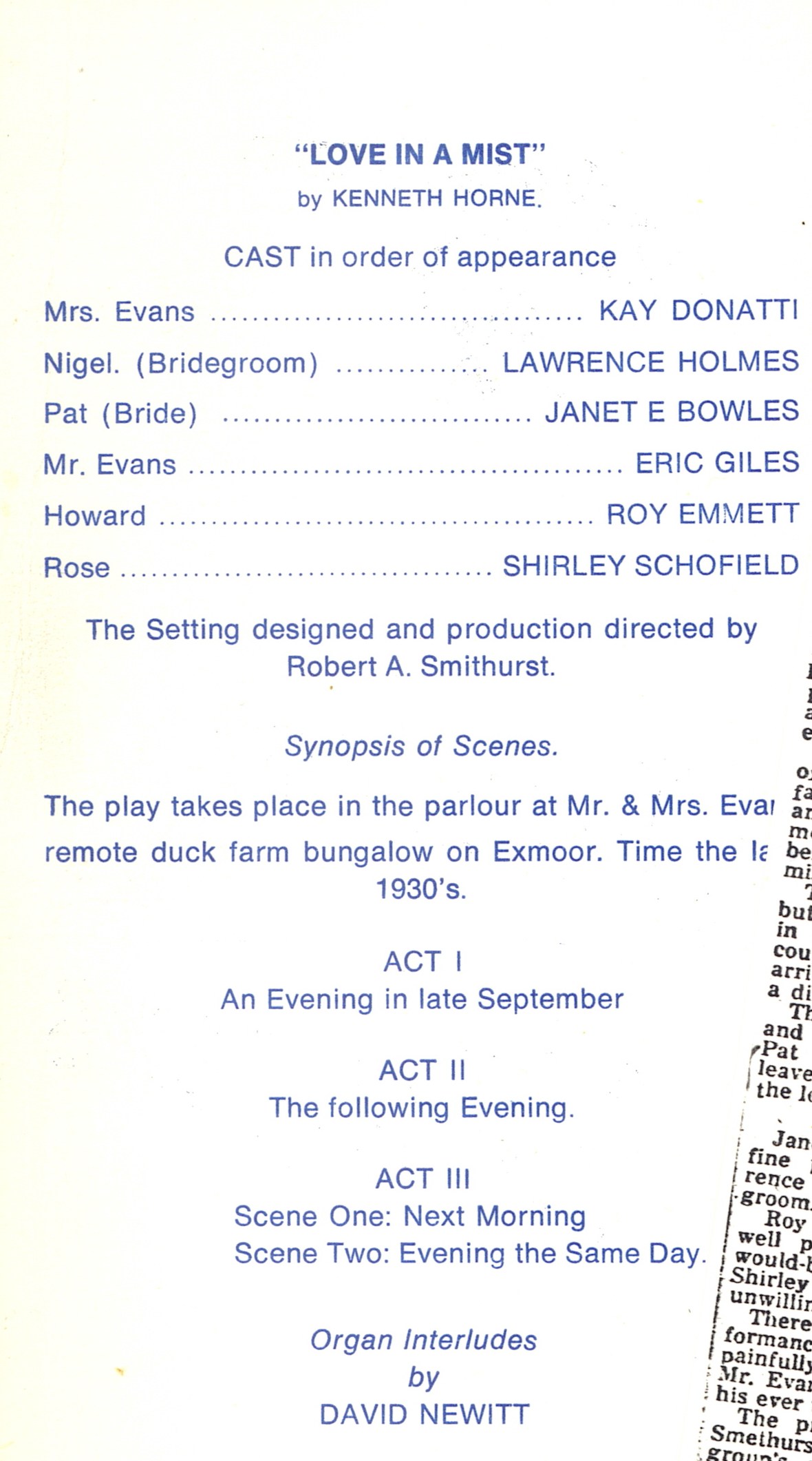 Previous Shows - Love In A Mist