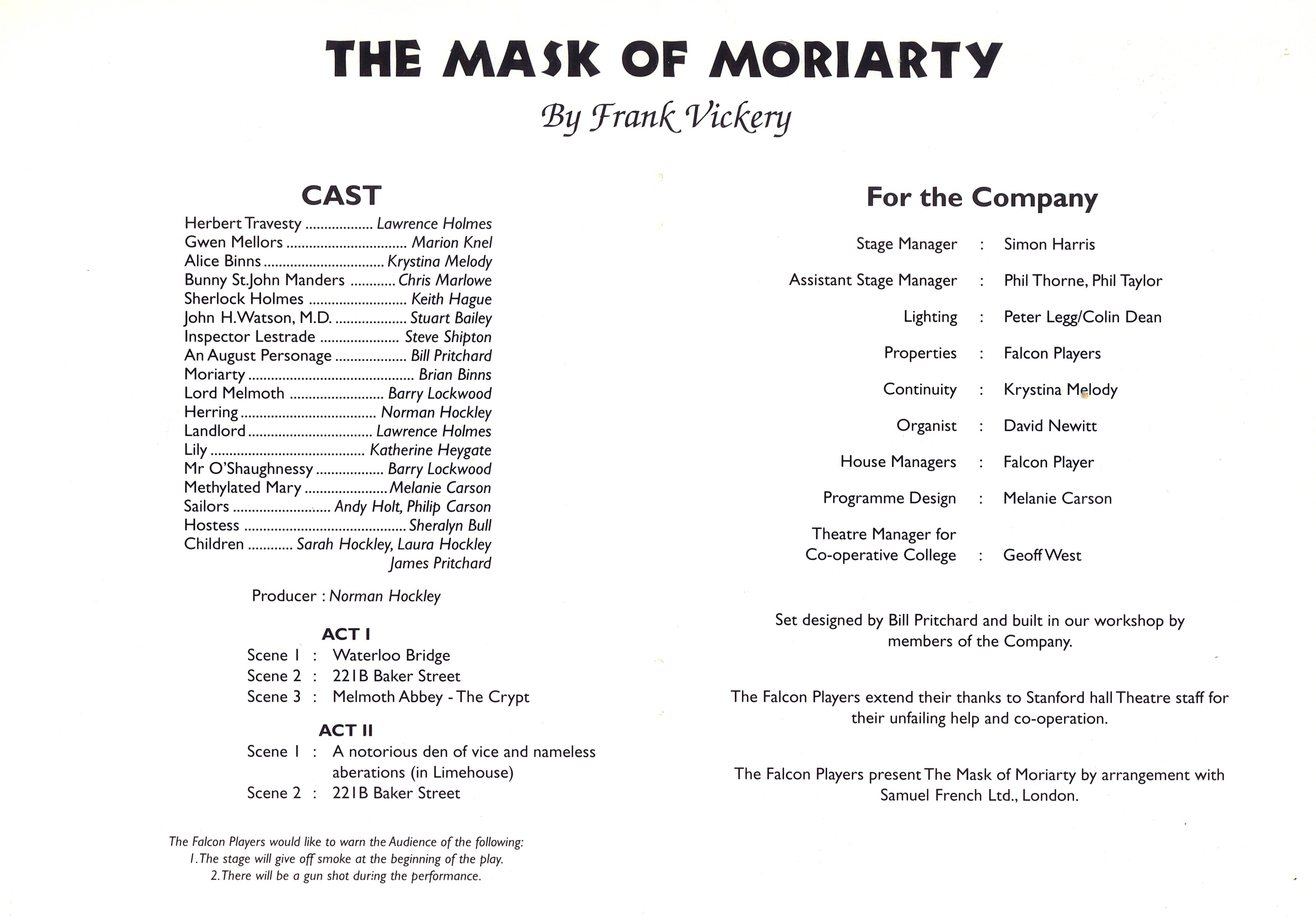 Previous Shows - Mask Of Moriarty
